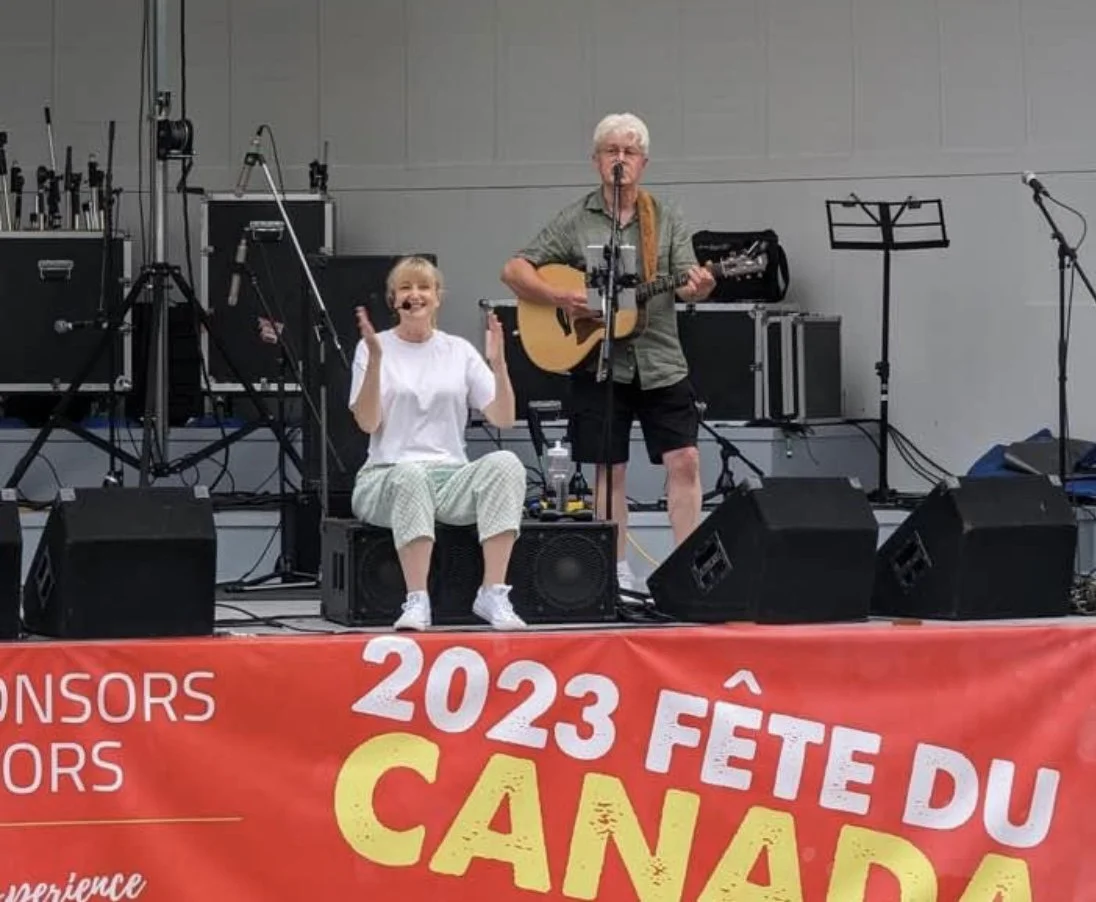 Performing "Gina Giraffe" (an original song) at Bobcaygeon Concert in the Park Series